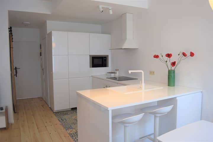 Das 30 m² große apartment verfügt über eine küche und einen essbereich, der auf einer… 625 eur /monatlich;